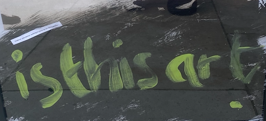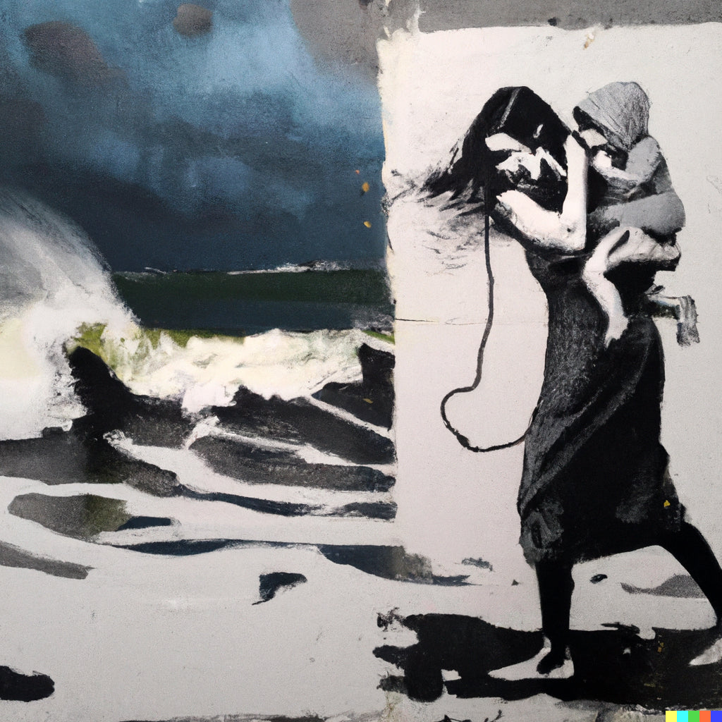 VISUALS ARE GENERATED BY AI TOOL USING WORDS PRESENTED ON THE PRINT WITH AND HAND-PAINTED OVER WITH THE QUESTION - IS THIS ART ?
